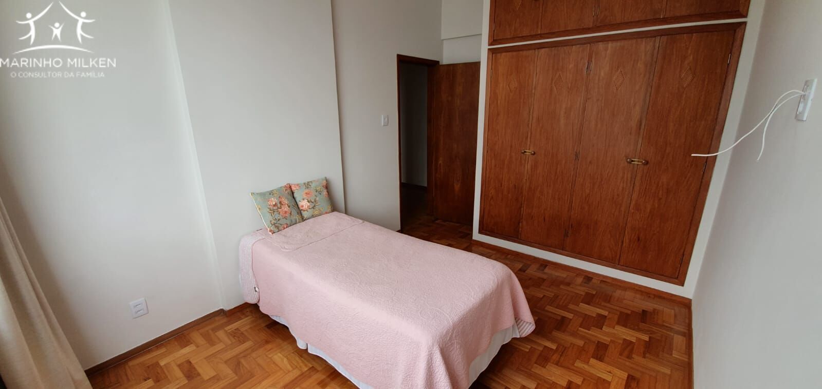 A Portaria foi reformada e está moderna e virtual. É administrada pela empresa Anjos da Guarda. O apartamento está localizado de frente para a Av. Afonso Pena. Tem 2 portas de entrada (a social e a de serviço). A sala é muito ampla 45,36m², permitindo a composição de 3 ambientes conjugados (estar, jantar e TV), com pontos de internet e TV a cabo por fibra óptica. A sala tem 2 cortinas. Jardim de inverno com 2 persianas. Os quartos estão todos voltados para a Av. Afonso Pena. São 4 quartos, sendo 1 suíte. Os quartos têm armários (antigos) e cortinas blackout. Todos os quartos têm pontos de internet e TV a cabo. O quarto que fica em frente à sala/copa foi transformado em escritório, sendo que, além do armário original (guarda-roupa), possui também 2 bancadas de trabalho com armários independentes, tanto inferiores quanto superiores, com 1 ponto de internet fibra óptica em uma das bancadas. Os banheiros (o da suíte e o social) foram totalmente reformados, cada um contendo box blindex, nicho para shampoo/sabonete, chuveiro Lorenzetti Acqua Ultra, piso, revestimento, pia, armário sob a pia, torneira, vaso sanitário e ducha higiênica, tudo novo. Cozinha com piso, pia, armário sob a pia, torneira, cooktop, tudo novo, além de armários antigos, superiores e inferiores, em excelente estado de conservação. Área de serviço ampla e muito bem ventilada, com janelas em ' L ', de blindex, com persianas blackout, também em ' L '. Despensa com armários e 1 banheiro de serviço, novo. O piso da sala e dos quartos é de sinteco, integralmente restaurado. Ar-condicionado na suíte, Samsung, Split, Inverter, Wind Free (sistema moderno que não venta), 12.000 BTUs, Quente-Frio. Ar-condicionado no escritório, Consul, Split, Inverter, 9.000 BTUs, só Frio. O gás não é encanado, ele fica embaixo da pia da cozinha, sendo 2 botijões interligados por um ' T '. Os elevadores (social e de serviço) foram quase totalmente reformados.