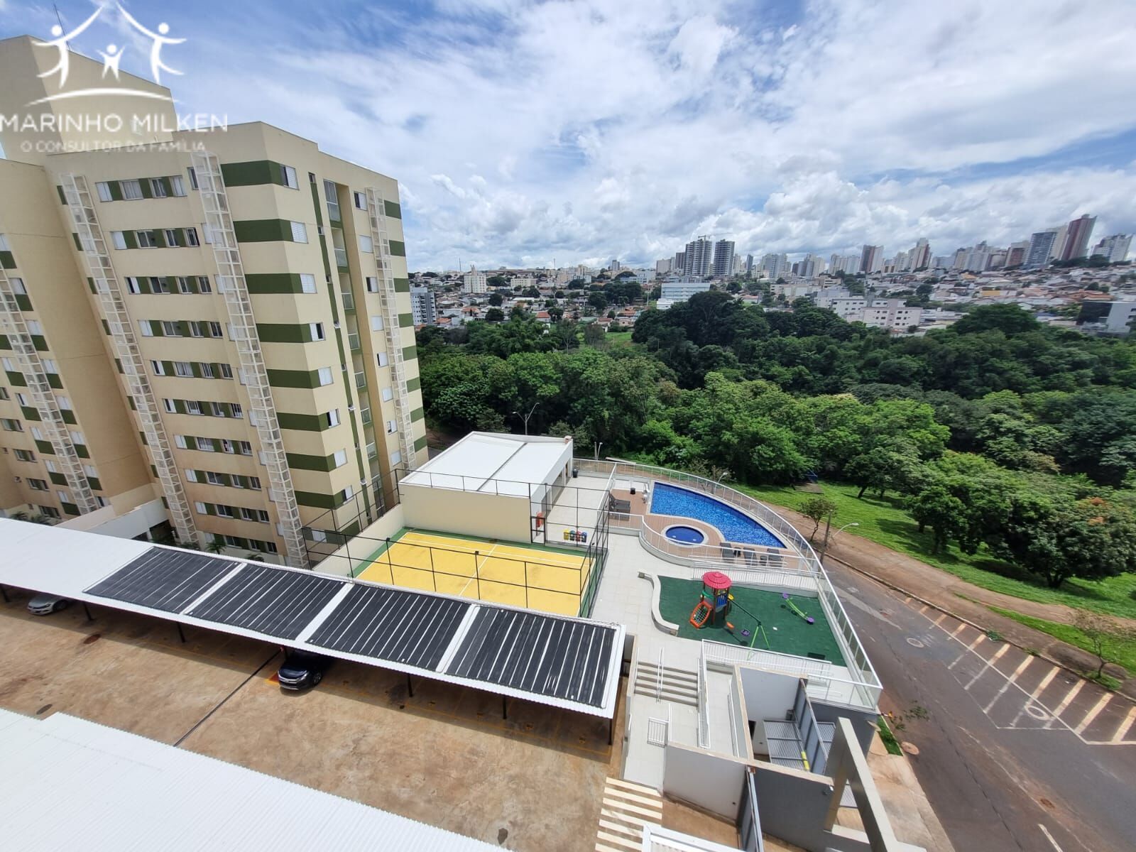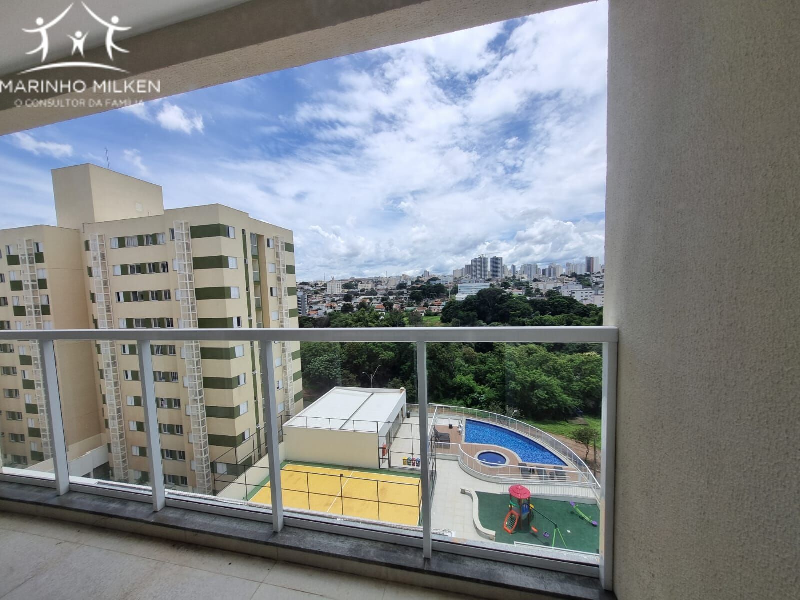 Área comum com piscina, quadra,brinquedoteca