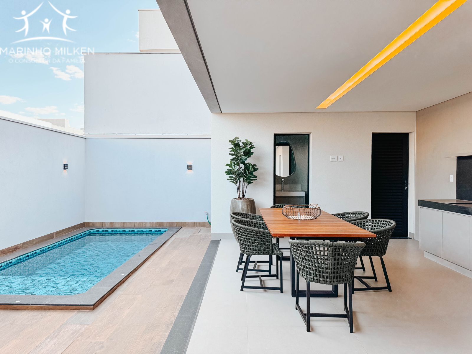 • Área gourmet com churrasqueira, mesa com cadeiras e armários