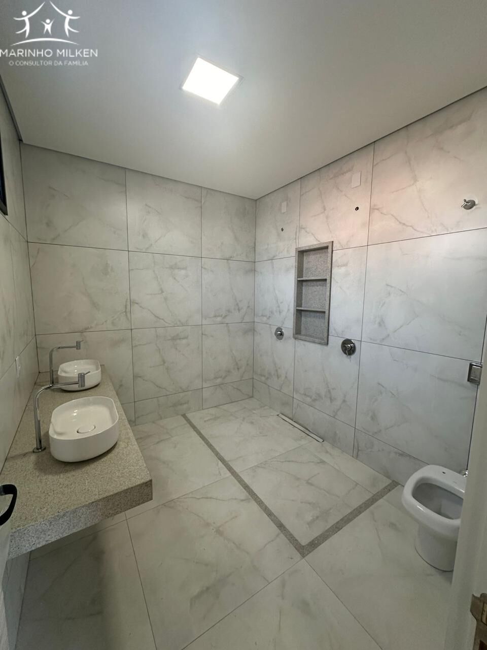 Porcelanato acetinado linha premium com rodapés embutidos;