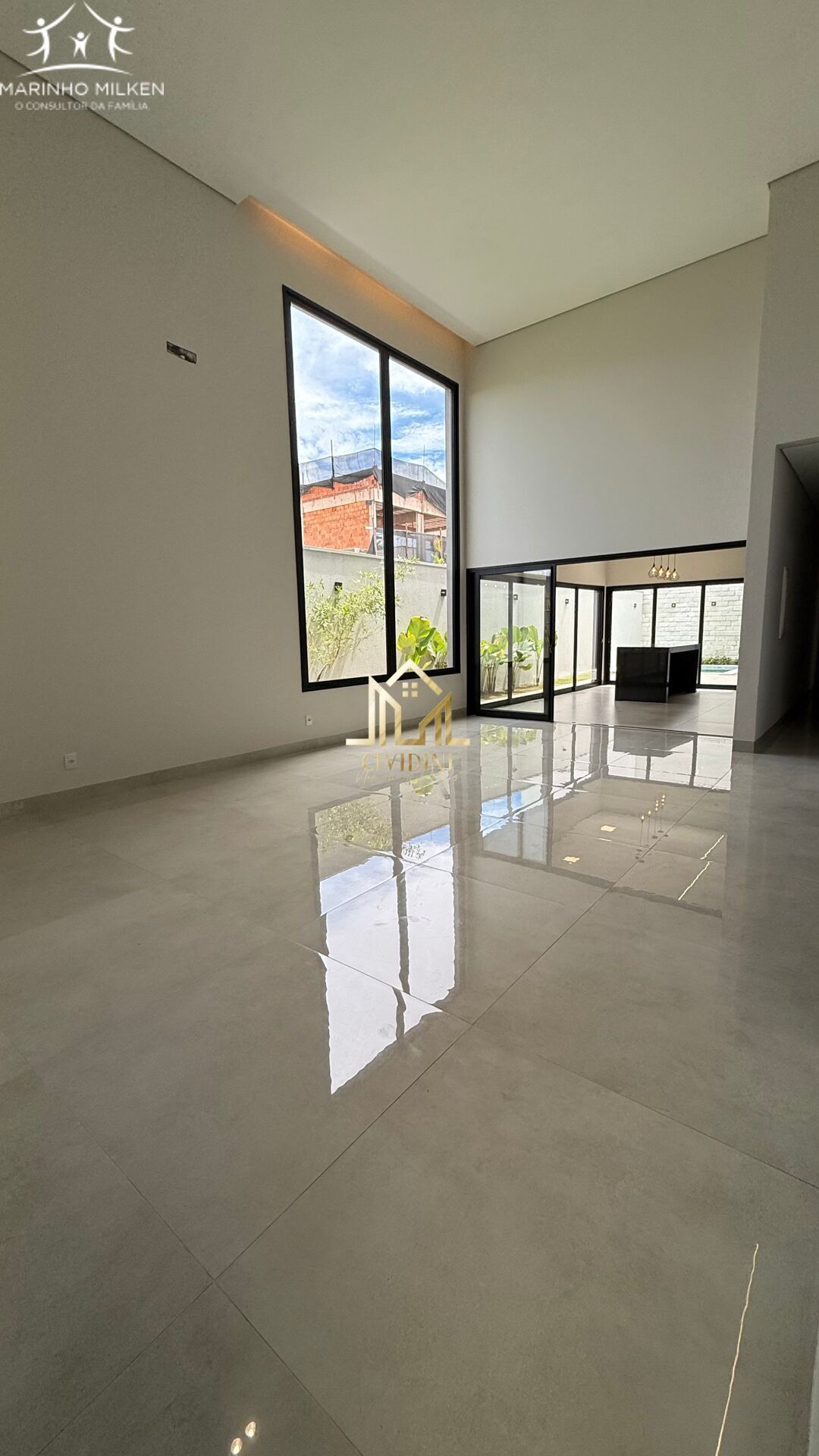 O imóvel possui 360 m² de área de terreno e 209 m² de área construída, distribuídos de forma funcional e elegante. A sala em dois ambientes, com pé-direito duplo, proporciona amplitude, iluminação natural e valorização arquitetônica. O escritório, também com pé-direito duplo, atende perfeitamente às demandas de trabalho ou estudo em home office.