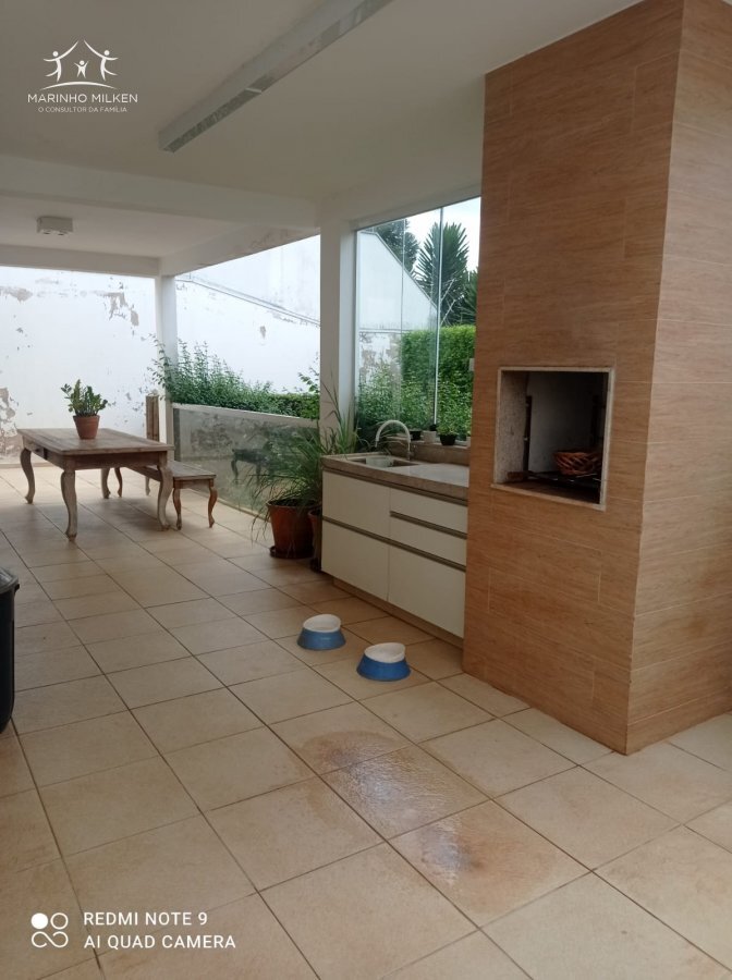 Área gourmet com churrasqueira, amplo espaço externo, canil, ducha.
