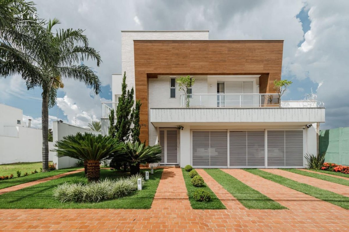 Pavimento inferior: Garagem para 3 carros coberta, 3 salas, sendo uma de jantar integrada com a de estar e uma sala de TV com fechamento em painel de madeira (privacidade). Um lavabo interno. Cozinha individualizada das salas, com acesso à lavanderia que conta com despensa separada e opções de varal interno e externo. Um escritório com entrada separada, que possui banheiro completo e que pode ser convertido em uma suíte. Na área externa possui um ofurô de lugares, área gourmet com churrasqueira e um banheiro externo de apoio.