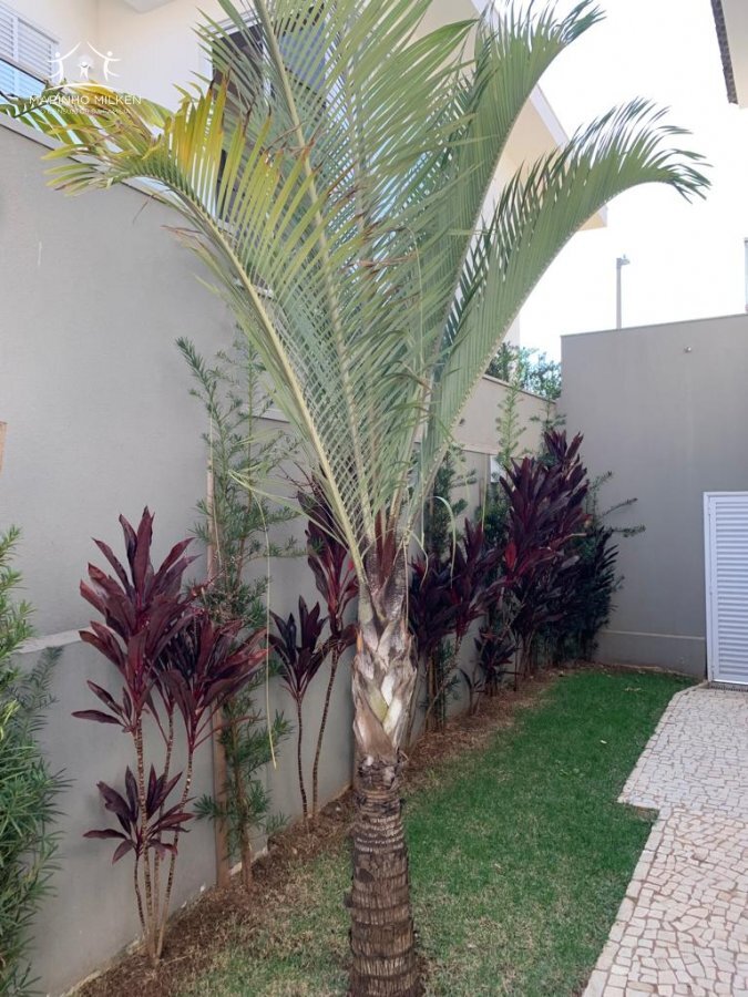Toda decorada com plantas em paralelo ao muro (de fora a fora).