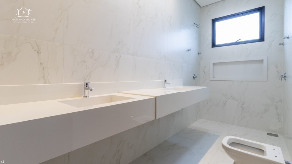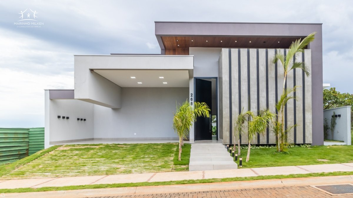 Magnífica casa térrea localizada em condomínio na zona sul de Uberlândia, com área construída de 241m², em terreno de 421 m², caracterizada pela ampla integração de seus ambientes, contendo sala de estar/home/jantar com área total de 50 m², em pé direito alto de 4.75 m², escritório, 03 (três) suítes com janelas/portas automatizadas, sendo a suíte máster com banheiro contendo pias duplas esculpidas em porcelanato e chuveiros duplos, cozinha em ilha, área de serviço, despensa, com excelente acabamento em piso porcelanato e vinílico.