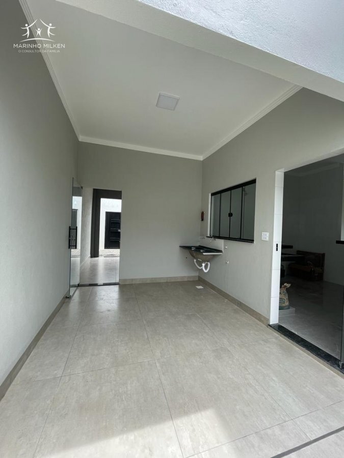Casa com sala de jantar, cozinha Americana, pé direito 4,5m, 3/4 sendo uma suíte, garagem coberta para 3 carros e mais 2 vagas descobertas, área de serviço, área gourmet com lavabo, toda no porcelanato, box nos banheiros, portão eletrônico, fino acabamento.